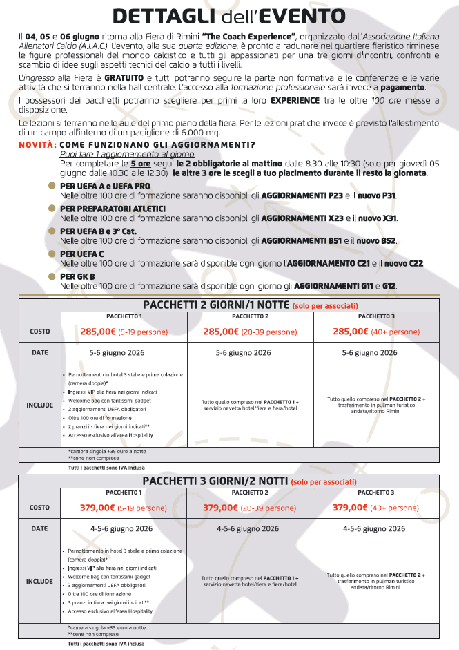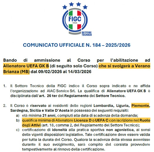 PROMEMORIA PER I COLLEGHI ALLENATORI
